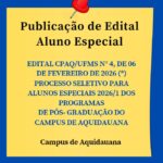 Tornou-se público o Resultado Preliminar da Prova de Proficiência em Língua Estrangeira, aplicada aos candidatos ao PSU 2026/1 e aos alunos regulares dos Cursos de Pós-Graduação Stricto Sensu da UFMS. O número de inscrição (protocolo) dos candidatos está disponível em “Minhas Inscrições” no Portal da Pós-Graduação. O período para recurso administrativo da Prova de Línguas será de 12 a 13/02/2026 e deverá […]