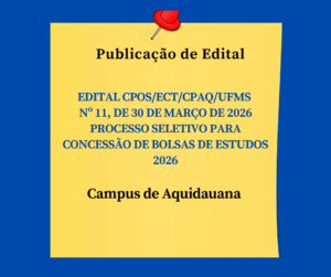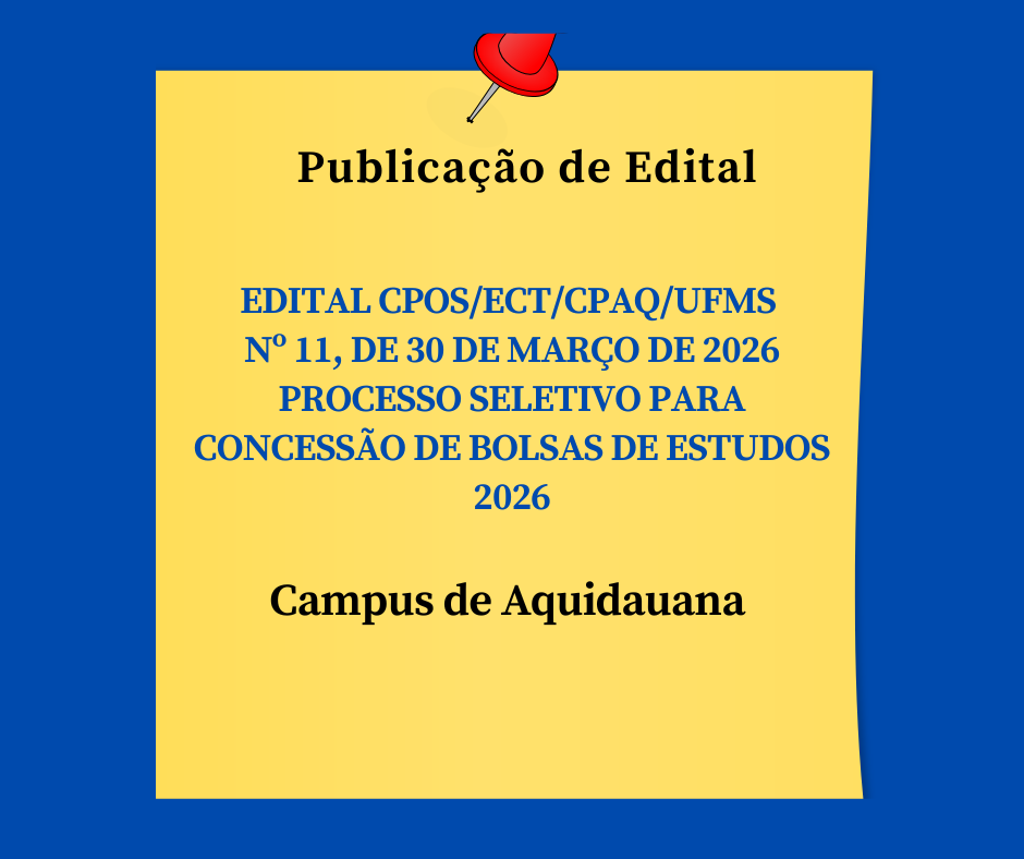 EDITAL CPOS/ECT/CPAQ/UFMS Nº 11, DE 30 DE MARÇO DE 2026- PROCESSO SELETIVO PARA CONCESSÃO DE BOLSAS DE ESTUDOS 2026